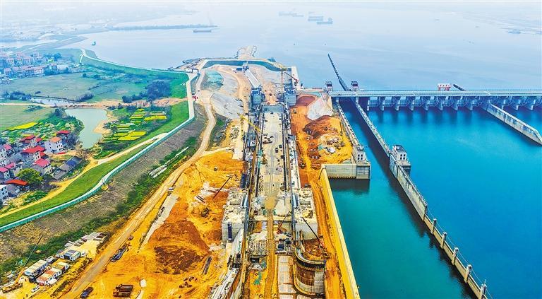 3月17日,江西省丰城市赣江龙头山枢纽二线船闸项目工地一派繁忙。该项目建成后,将进一步提升赣江航道通航能力,对完善江西内河水运网络、推动区域经济协调发展、优化区域运输结构及水利水电设施等具有重要意义。周 亮摄(中经视觉)