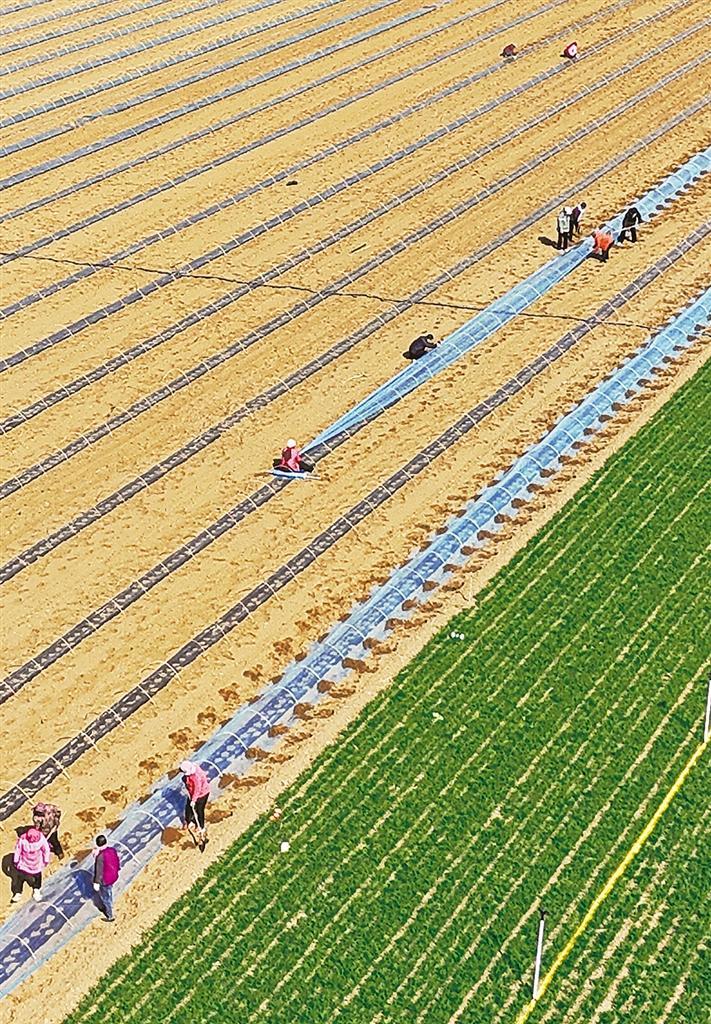 三月十八日,河北省石家庄市栾城区西营乡南贾村,农户在给西瓜种子搭建拱棚。连日来,当地抢抓气温回升的有利时机,全面开启新一年的西瓜种植。李明发摄(中经视觉)