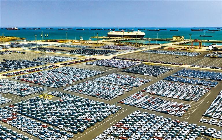 近日,江苏省苏州港太仓港区,专业汽车运输船正在装载出口海外的汽车。中国汽车工业协会发布的数据显示,今年前2个月我国汽车出口135.2万辆,同比增长48.4%。 计海新摄(中经视觉)