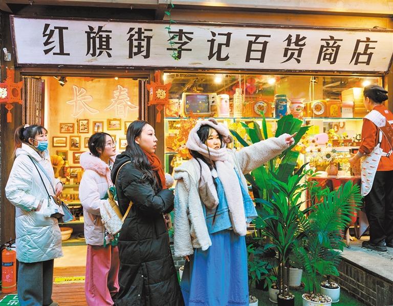 上世纪90年代以来,红旗街经历了“电子一条街”、传统商业街、现代综合商圈的发展历程。欧亚商都、亚细亚百货、万达广场、时代天街……如今,这里商场众多,业态多样,涵盖高端消费、年轻追求、家庭娱乐等多层次需求,可谓文旅商融合、全客层覆盖。特别是2019年开业的室内山景文旅商业体“这有山”,将室内山景与商业结合,集旅游、美食、商业、休闲为一体,迅速成为网红打卡地。