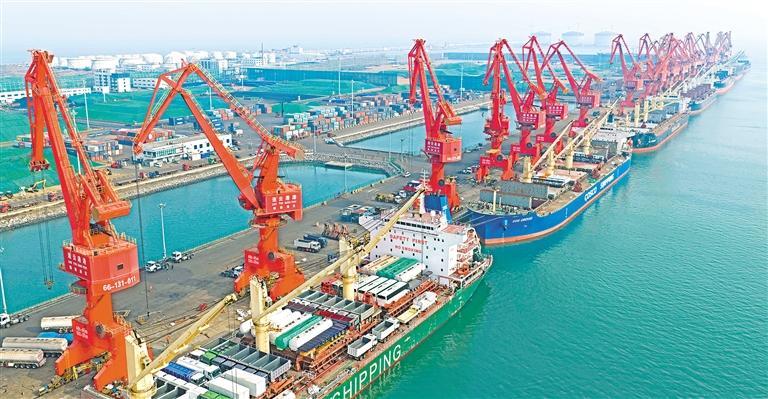 近日,在江苏省连云港港赣榆港区散货码头,货轮在装载出口车辆。今年以来,该港通过开通车辆运输绿色通道、优化装卸作业流程,出口车辆持续保持快速增长态势。