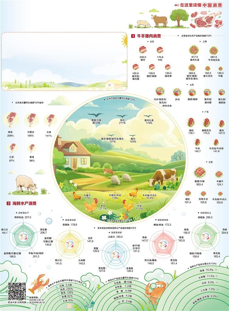 从整猪囤货到海参上桌,从本地偏好到跨域尝鲜,肉类消费既有传统年节的温馨热闹,又有品质生活的全新表达。新旧交融、城乡共进的肉类消费趋势,映照着烟火气里不断升级的美好生活。