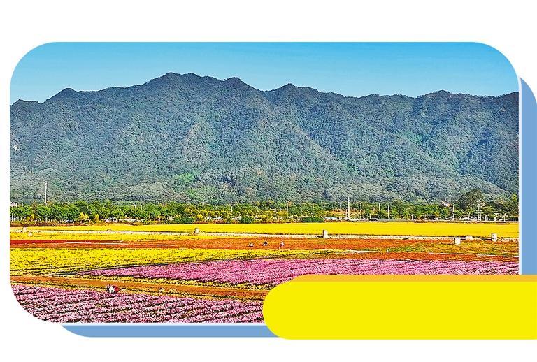 清晨,当第一缕阳光洒向广东省佛山市三水区南山镇“归田南山”创意农业园,连绵的彩色菊海在微风中如泛起的涟漪,与远处的南丹山相映成趣。游客漫步花田间,不时用镜头拍下这诗画般的景致。
