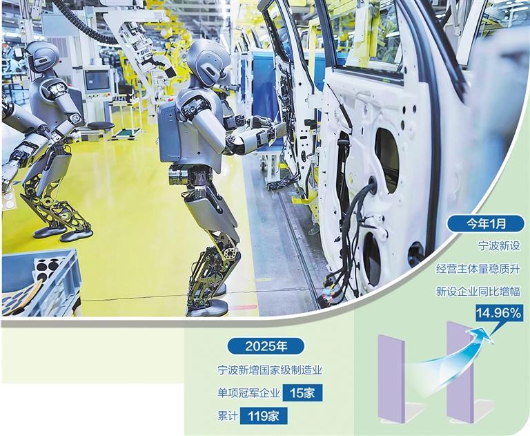 近日,工业和信息化部公布创建国家新型工业化示范区首批城市名单,浙江省宁波市榜上有名。数据显示,2025年,宁波市新增国家级制造业单项冠军企业15家,累计119家,连续8年居全国城市首位。