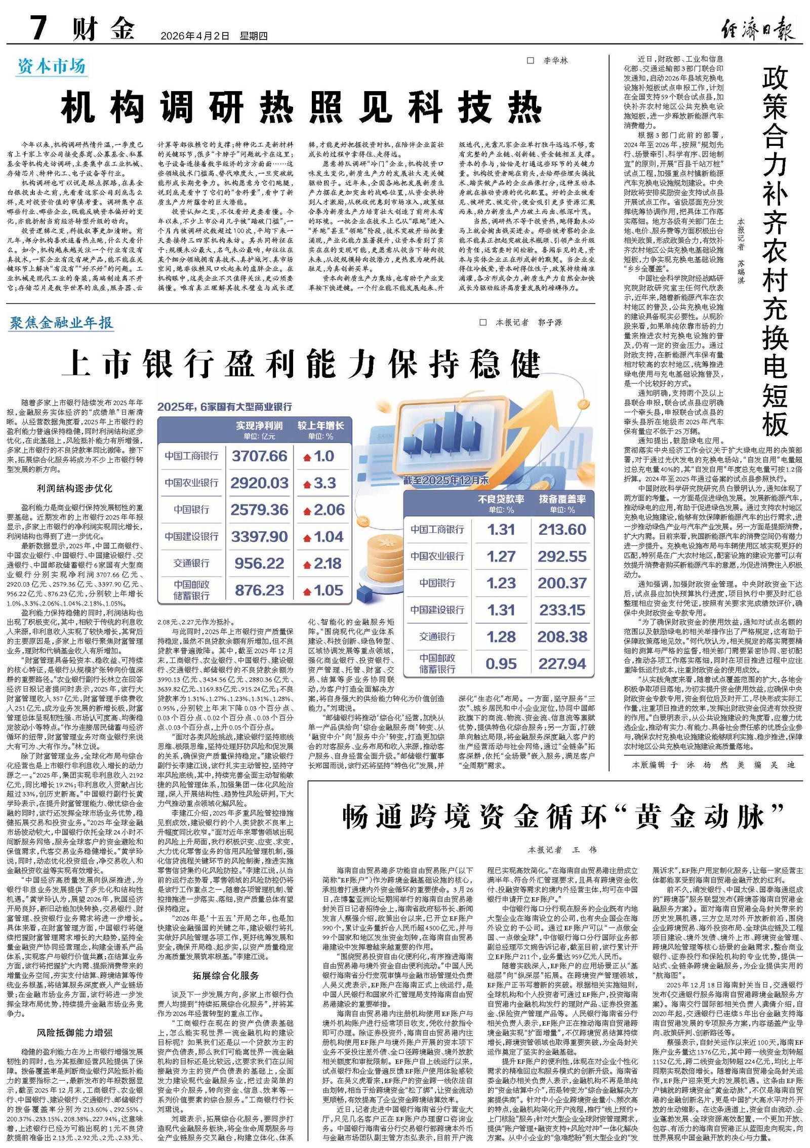 盈利能力是商业银行保持发展韧性的重要基础。近期发布的上市银行2025年年报显示,多家上市银行的净利润实现同比增长,利润结构也得到了进一步优化。