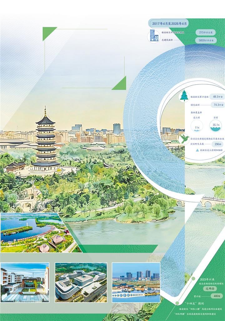 2017年4月1日,中共中央、国务院宣布设立雄安新区。9年来,一座现代化城市形象初步显现。