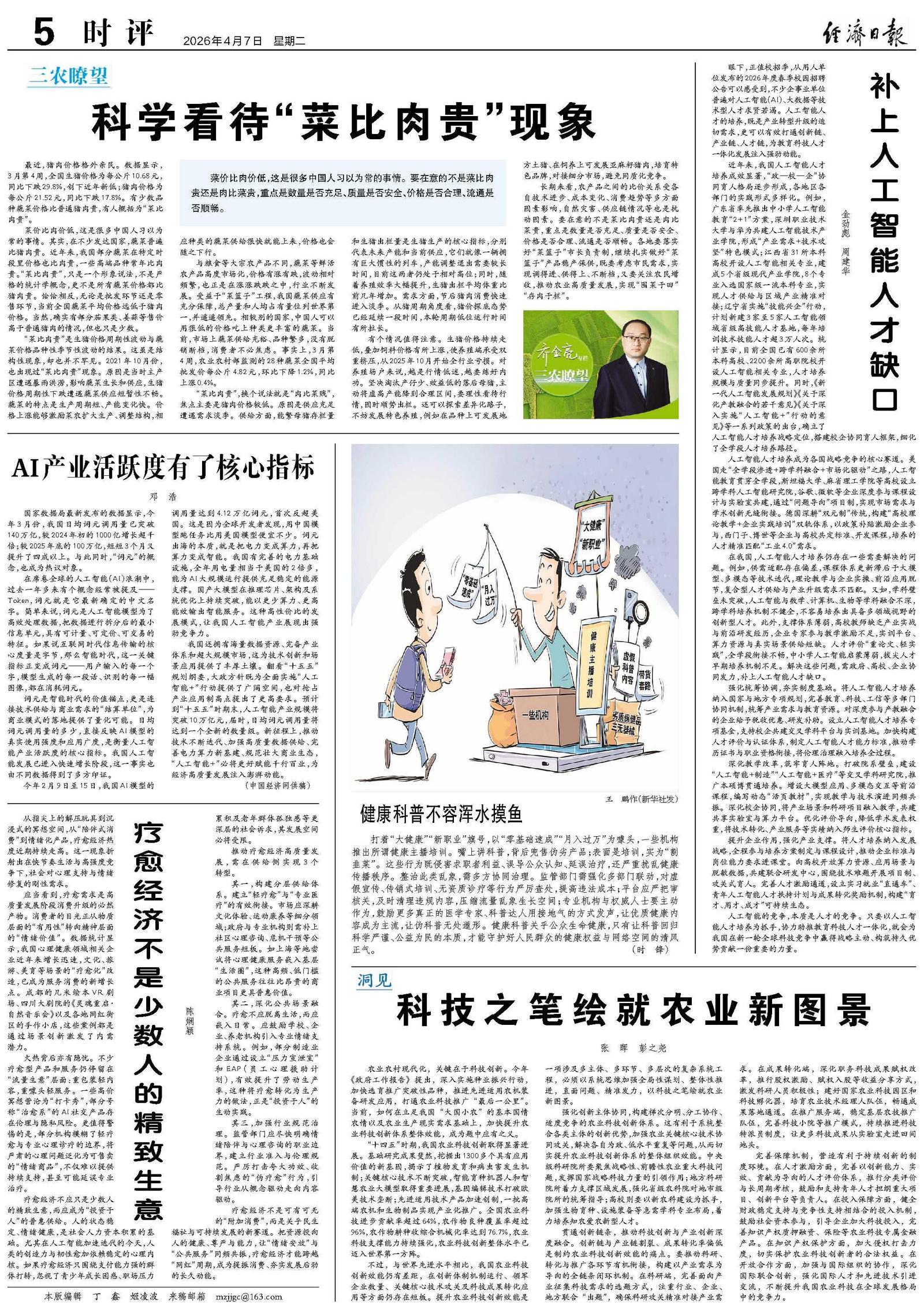 眼下,正值校招季,从用人单位发布的2026年度春季校园招聘公告可以感受到,不少企事业单位普遍对人工智能(AI)、大数据等技术型人才求贤若渴。人工智能人才的培养,既是产业转型升级的迫切需求,更可以有效打通创新链、产业链、人才链,为教育科技人才一体化发展注入强劲动能。