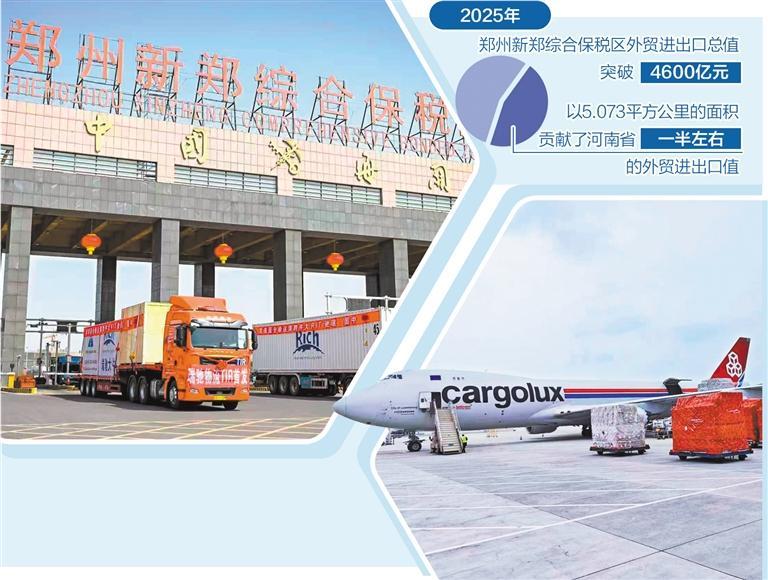 “2025年,新郑综保区外贸进出口总值突破4600亿元,再创新高。以5.073平方公里的面积,贡献了河南省一半左右的外贸进出口值。”郭利超介绍,该综保区已成为国内海淘化妆品重要集散地,随着唯品会、京东等大仓相继落户,进出口活力明显增强。