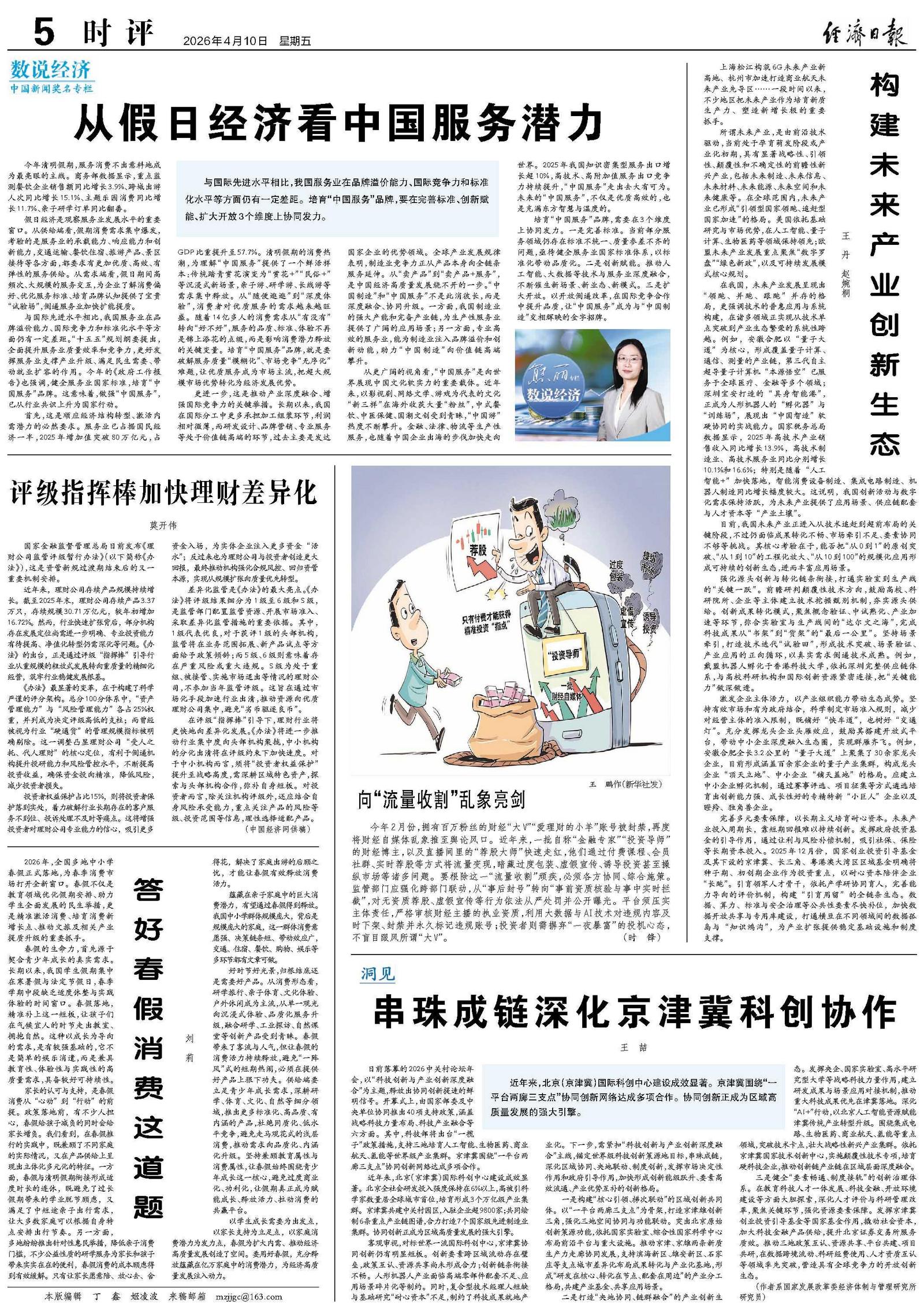 首先,这是顺应经济结构转型、激活内需潜力的必然要求。服务业已占据国民经济一半,2025年增加值突破80万亿元,占GDP比重提升至57.7%。清明假期的消费热潮,为理解“中国服务”提供了一个鲜活样本:传统踏青赏花演变为“赏花+”“民俗+”等沉浸式新场景,亲子游、研学游、长线游等需求集中释放。从“随便逛逛”到“深度体验”,消费者对优质服务的需求越来越旺盛。随着14亿多人的消费需求从“有没有”转向“好不好”,服务的品质、标准、体验不再是锦上添花的点缀,而是影响消费潜力释放的关键变量。培育“中国服务”品牌,就是要破解服务质量“模糊化”、市场竞争“无序化”难题,让优质服务成为市场主流,把超大规模市场优势转化为经济发展优势。