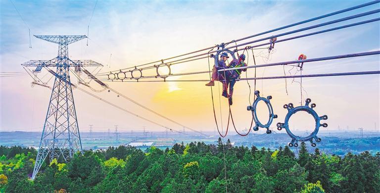 4月5日,安徽送变电工程有限公司员工在建设甘肃—浙江±800千伏特高压直流输电工程,助力西部清洁能源外送。