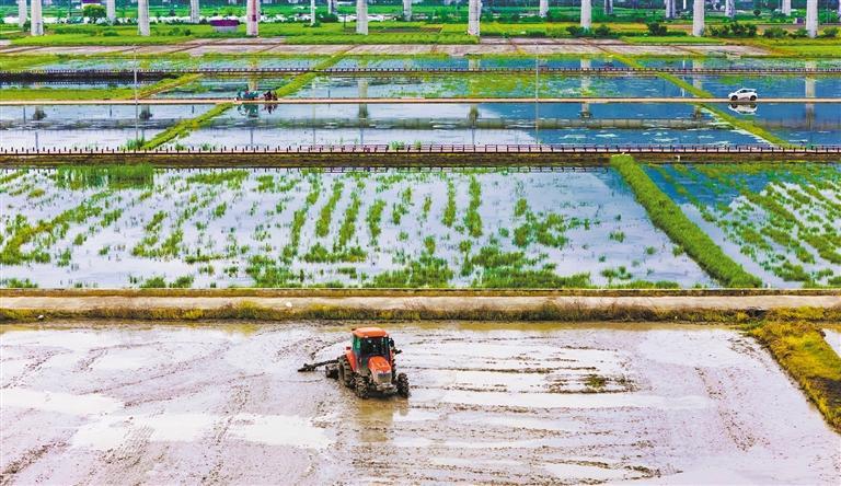 4月6日,村民在浙江永康市石柱镇池宅村的稻虾综合种养基地进行管护作业。该基地利用时间差,实现水稻种植、龙虾养殖、休闲垂钓“一田三收”。 胡肖飞摄 (中经视觉)