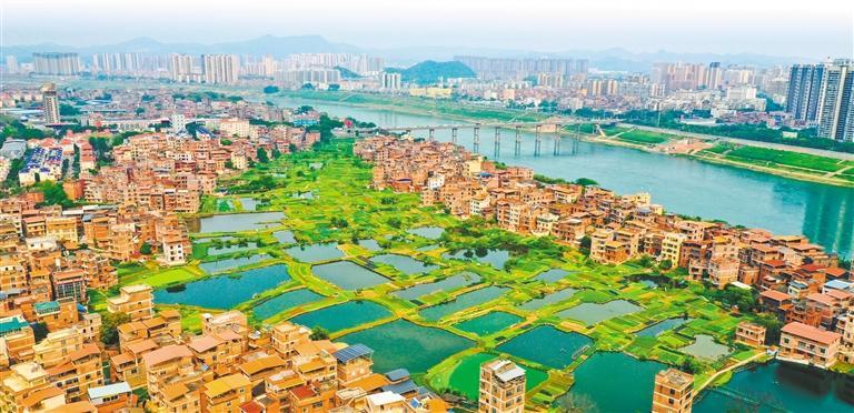 4月12日,广西梧州市长洲岛生态蔬菜基地,湖塘与菜畦交错分布,鱼塘如镜,菜畦如画。 黎杰源摄(中经视觉)