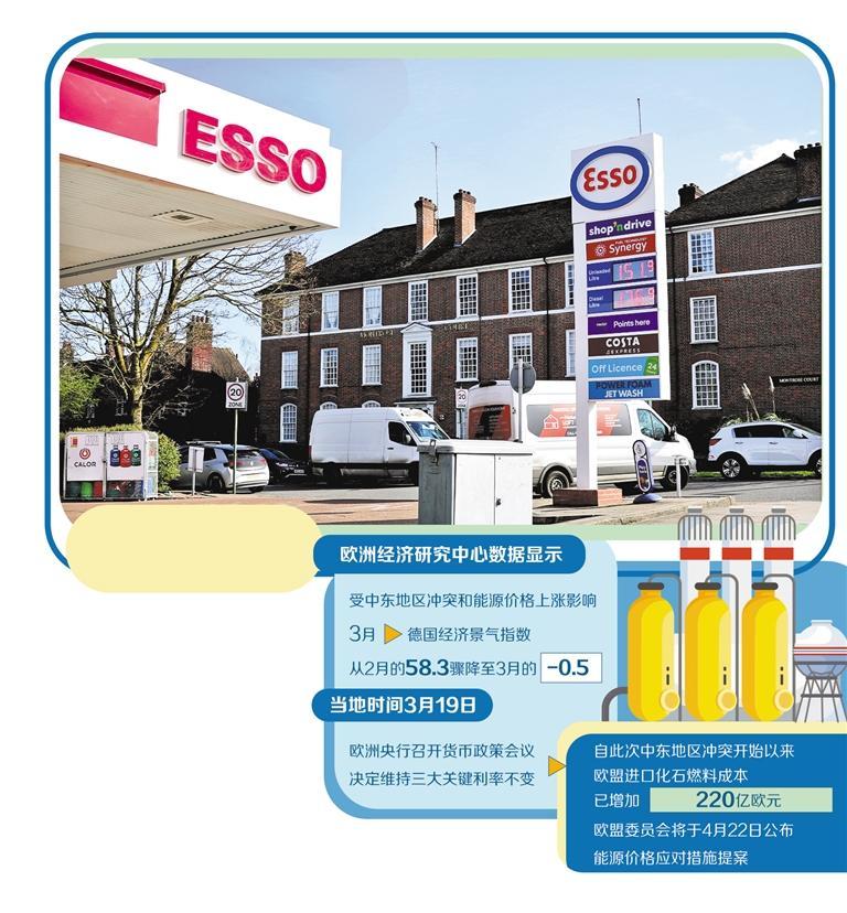 相关数据显示,欧洲经济信心已出现明显恶化。欧洲经济研究中心近期公布数据显示,受中东地区冲突和能源价格上涨影响,德国经济景气指数从2月的58.3骤降至3月的-0.5,出现“断崖式”下跌。这一下降幅度极为罕见,反映出市场预期的急剧逆转。数据还显示,3月德国几乎所有行业均未出现好转迹象,其中,化工、制药等能源密集型产业受到的冲击尤为严重,凸显能源成本飙升对实体经济形成直接挤压。