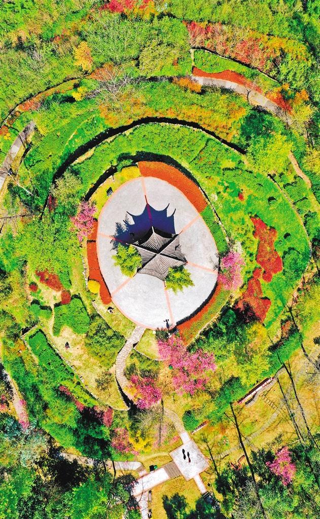 4月1日,俯瞰重庆市万盛经开区由荒坡改建而成的犀牛背公园。近年来,当地加快口袋公园建设,改善城市环境。王泸州摄(中经视觉)