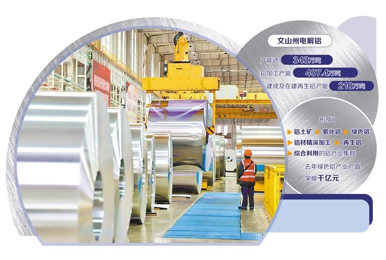 着眼今后发展,文山州今年提出,加快建设“绿色铝谷”核心区,构建完善铝产业体系,全力保障建成产能稳定运行,加快剩余产能转移落地,促进电解铝、再生铝和铝加工融合发展,大力发展“绿电+先进制造业”,推动中铝绿材、信特等重点项目和50万吨再生铝建成投产,实现绿色铝产值增长20%以上。