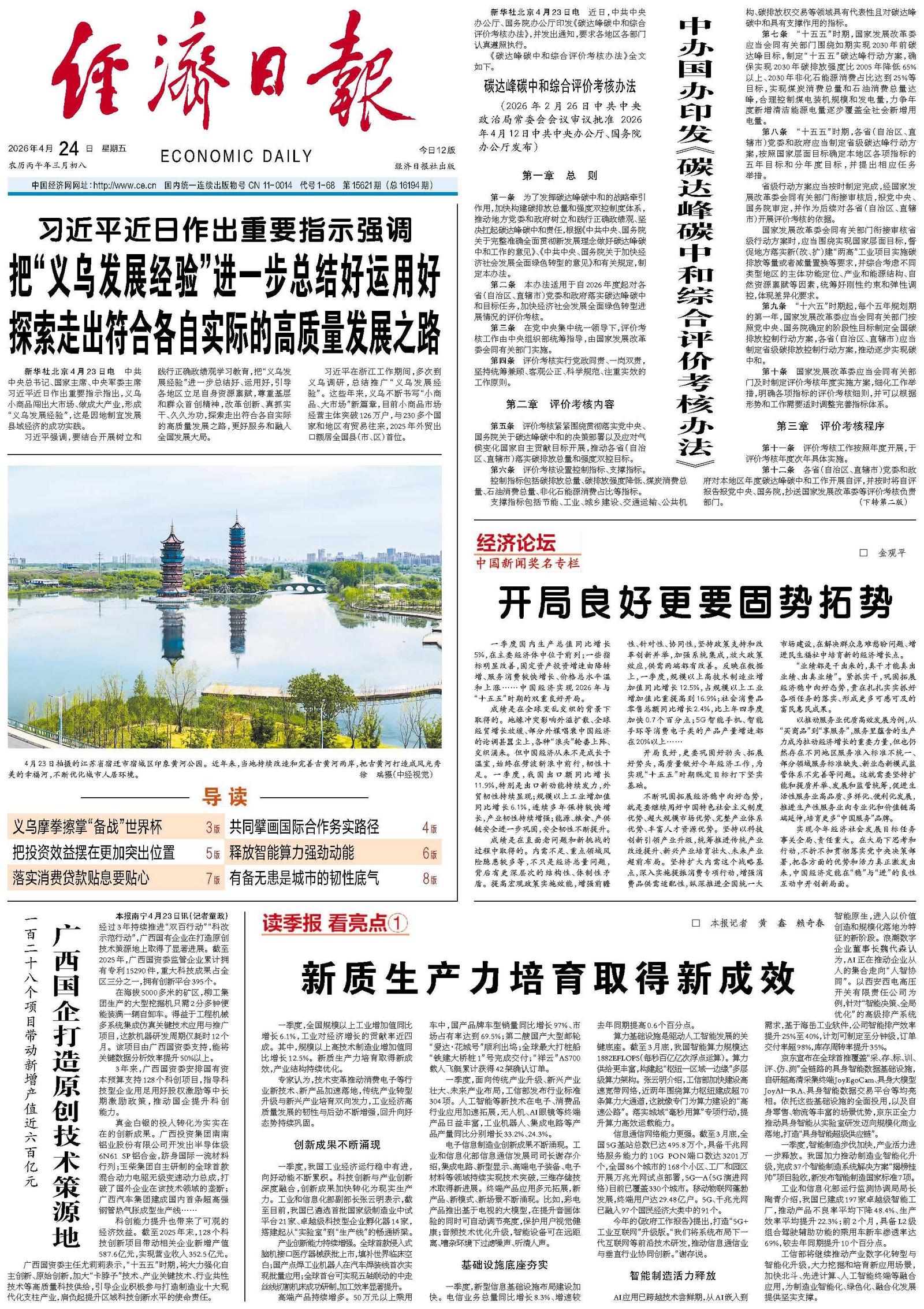 一季度,我国工业经济运行稳中有进,向好动能不断累积。科技创新与产业创新深度融合,创新成果加快转化为现实生产力。工业和信息化部副部长张云明表示,截至目前,我国已遴选首批国家级制造业中试平台21家、卓越级科技型企业孵化器14家,搭建起从“实验室”到“生产线”的畅通桥梁。