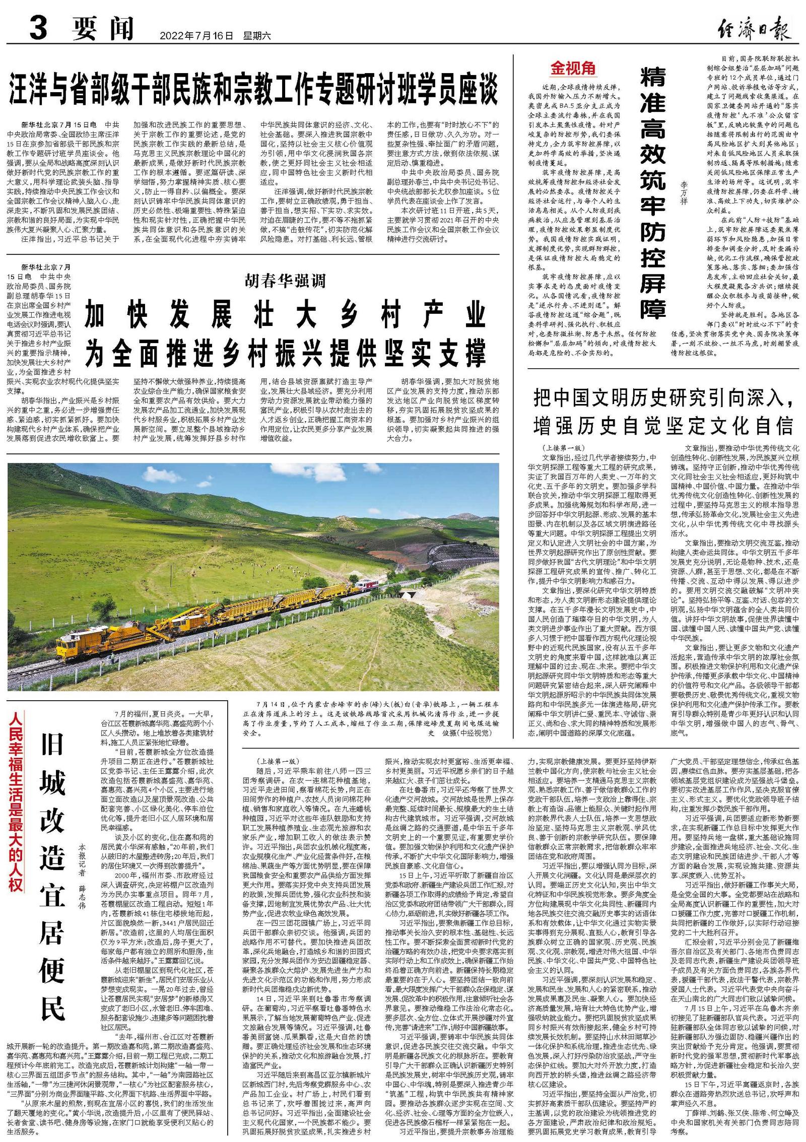汪洋与省部级干部民族和宗教工作专题研讨班学员座谈