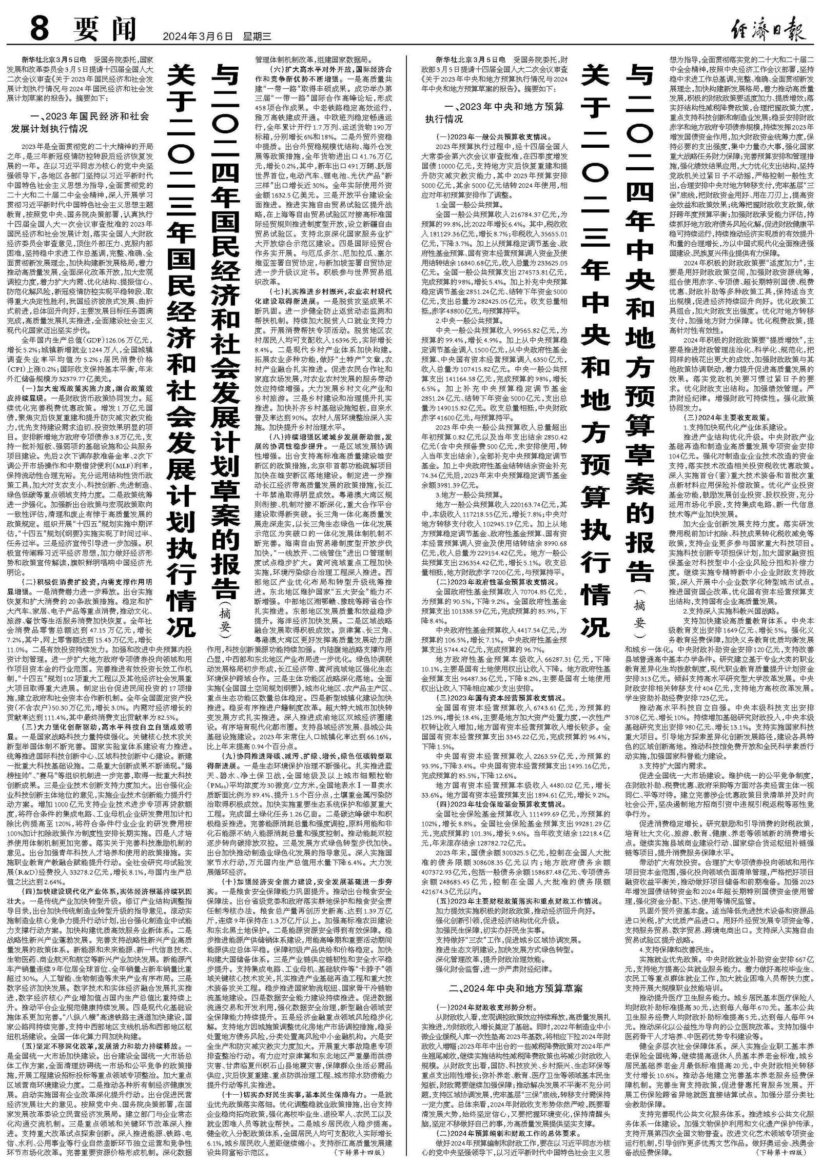 关于二〇二三年中央和地方预算执行情况与二〇二四年中央和地方预算草案的报告(摘要)