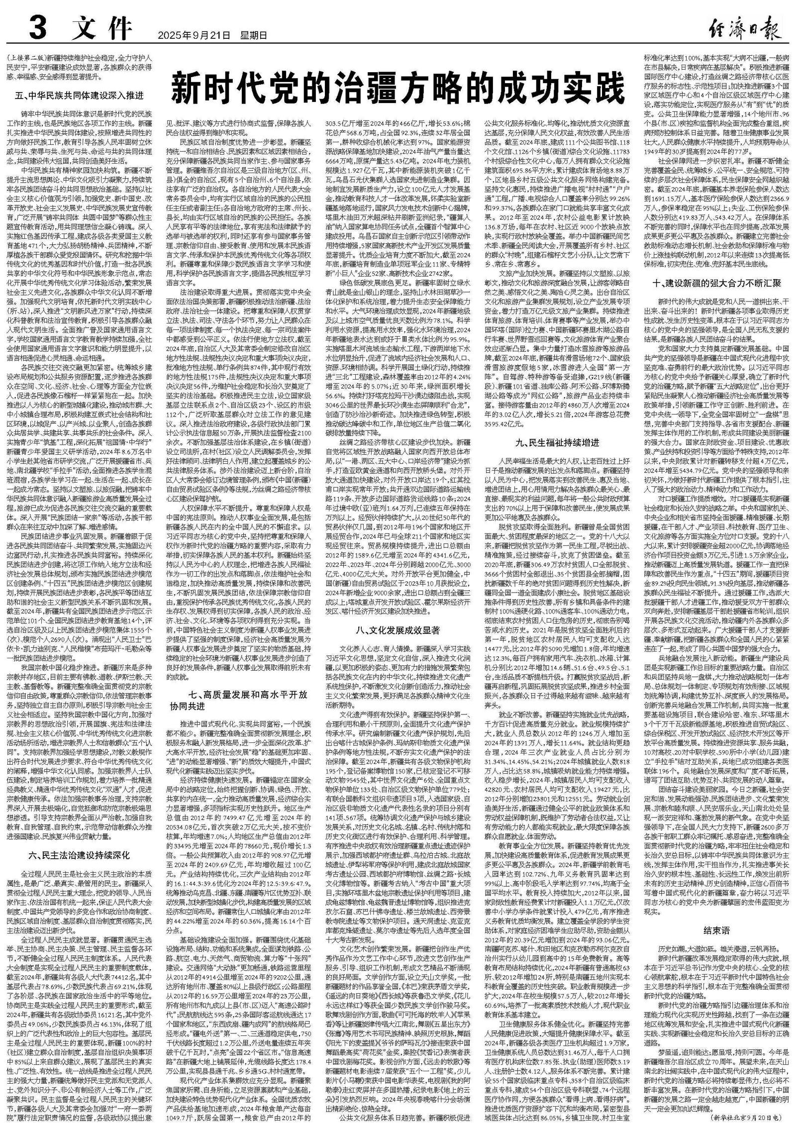 新时代党的治疆方略的成功实践