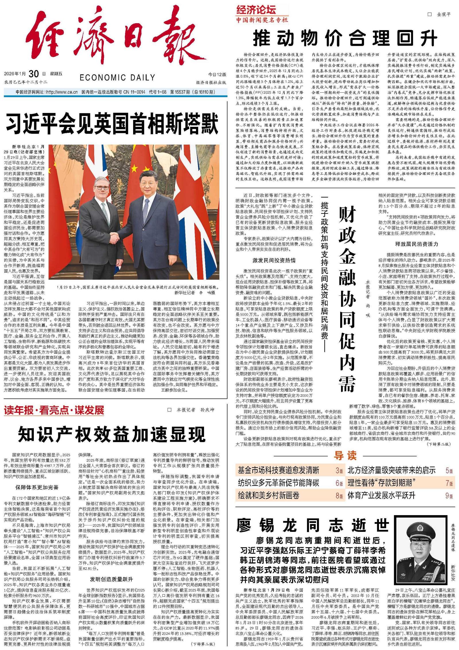 廖锡龙同志逝世