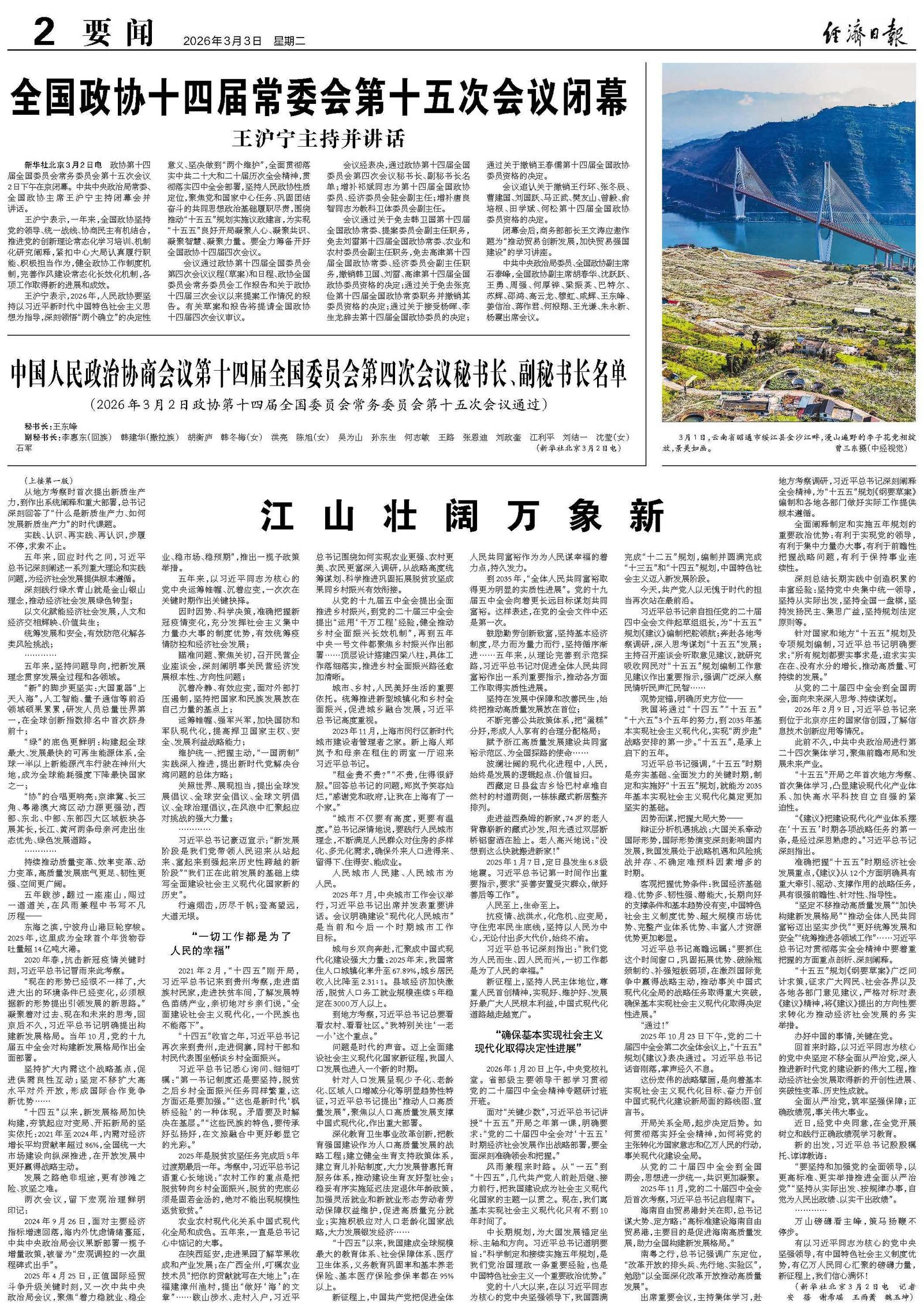 全国政协十四届常委会第十五次会议闭幕
