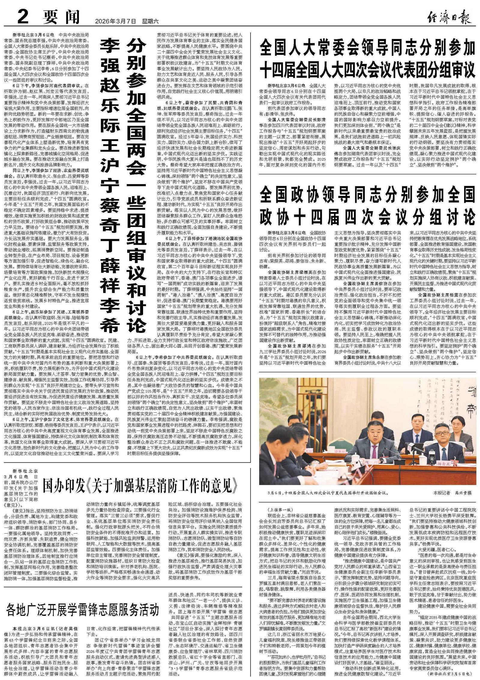 李强赵乐际王沪宁蔡奇丁薛祥李希分别参加全国两会一些团组审议和讨论